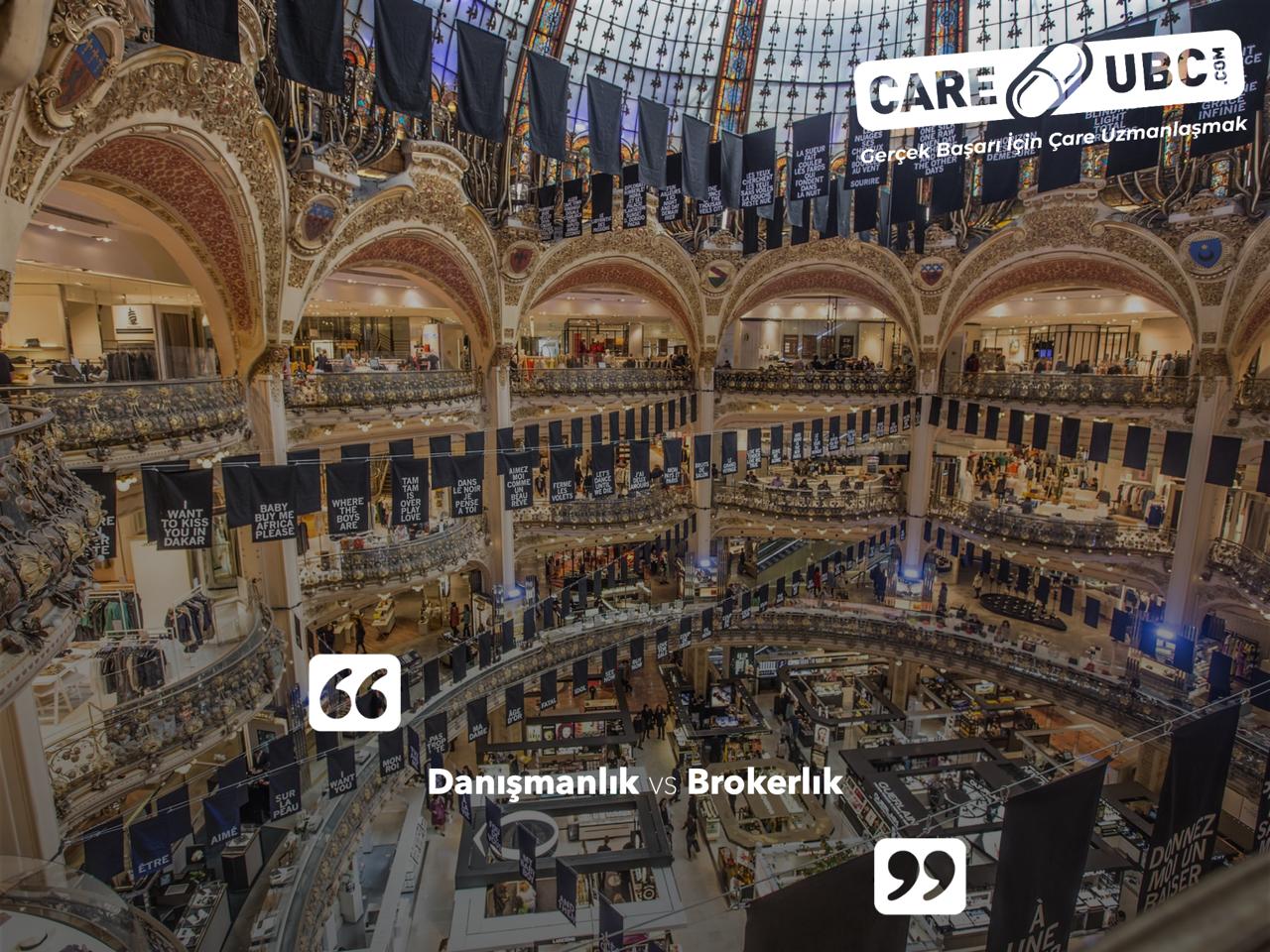 Doğrudan benzetmek tam uygun olmasa da BROKERLIK BİR ALIŞVERİŞ MERKEZİ YATIRIMCILIĞI VE İŞLETMECİLİĞİ iken, DANIŞMANLIK O ALIŞVERİŞ MERKEZİ İÇERİSİNDE BİR MAĞAZA SAHİBİ OLMAK demektir.