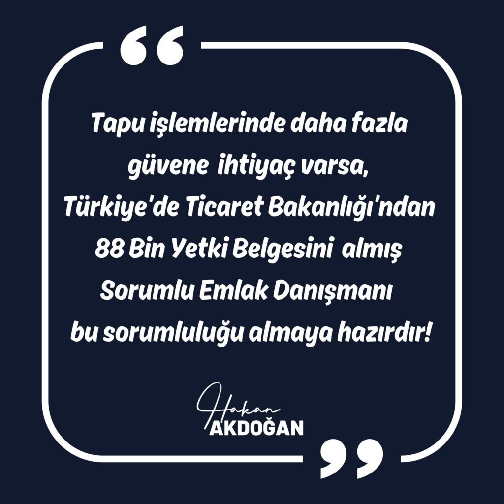 Eğer tapu işlemlerinde daha fazla güven ve doğrulama ihtiyacı varsa, Türkiye’de yetki belgesine sahip 88 bin sorumlu gayrimenkul danışmanı bu sorumluluğu almaya hazırdır.