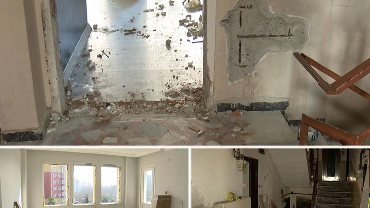 Binada yaşayan 39 aile, riskli yapı tespiti sonrası evlerini tahliye etti. Ancak eşi, 5 yaşındaki çocuğu ve 75 yaşındaki babasıyla yaşayan kiracı Fatih Şölen, binayı terk etmemekte kararlı. Kapı ve pencereleri sökülen, adeta bir şantiyeye dönen binada yaşamaya çalışan Şölen, gerekçe olarak "maddi imkansızlıkları" ve "resmi süreçteki belirsizlikleri" gösteriyor.