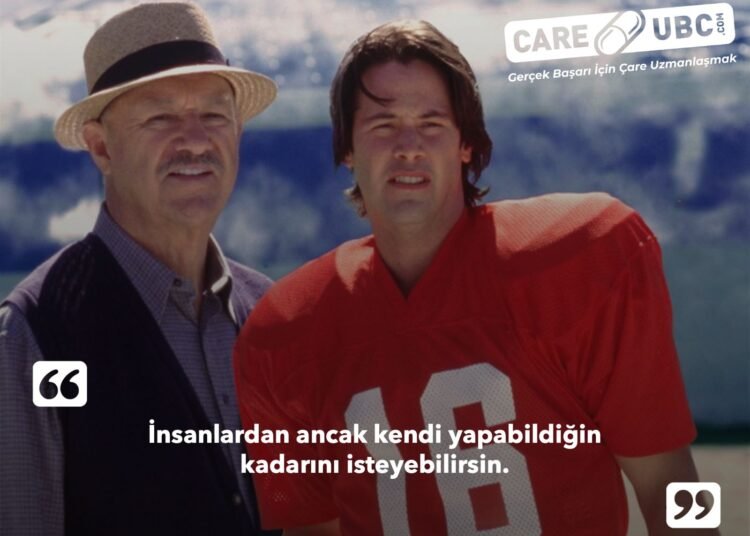 Keanu Reeves’in başrolünde oynadığı bir Amerikan futbolcusunun kariyerini anlatan “Yedek Oyuncular” filminde takım koçu Jimmy McGinty (Gene Hackman)’nin Shane Falco (Keanu Reeves)’ya söylediği “takım arkadaşlarından ancak kendi yapabildiğin kadarını isteyebilirsin” cümlesi zihnime mıh gibi çakılmış ve temel yaşam felsefem olmuştur.