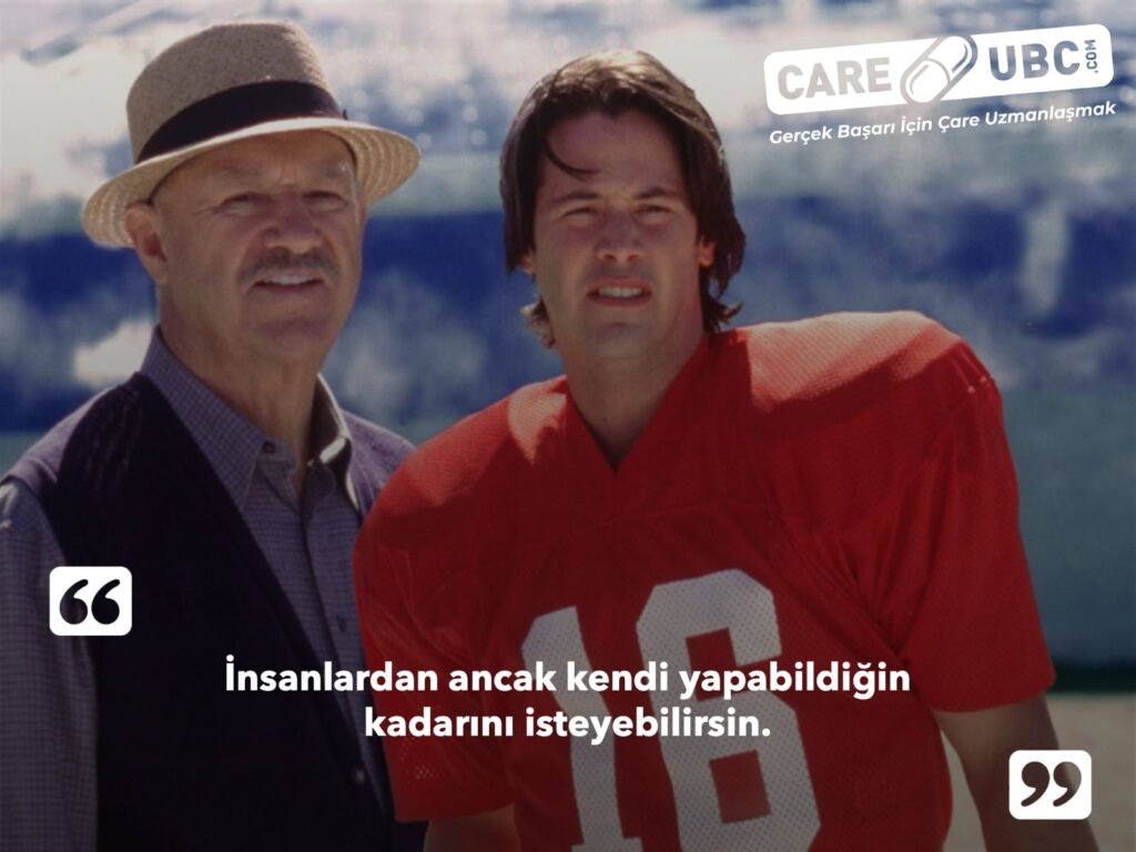 Keanu Reeves’in başrolünde oynadığı bir Amerikan futbolcusunun kariyerini anlatan “Yedek Oyuncular” filminde takım koçu Jimmy McGinty (Gene Hackman)’nin Shane Falco (Keanu Reeves)’ya söylediği “takım arkadaşlarından ancak kendi yapabildiğin kadarını isteyebilirsin” cümlesi zihnime mıh gibi çakılmış ve temel yaşam felsefem olmuştur.